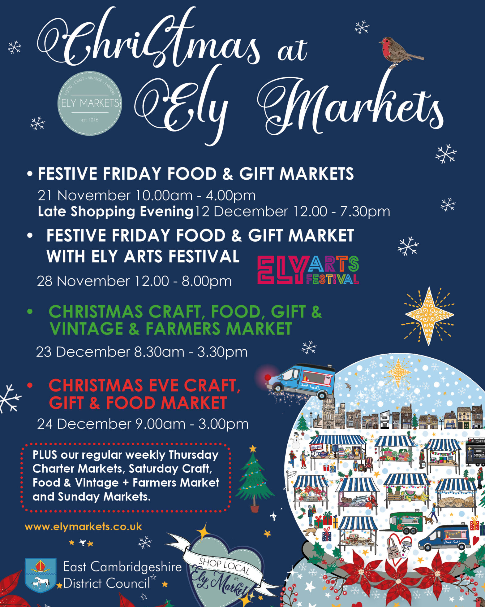 This Christmas, in addition to our regular weekly markets, we are hosting a wonderful selection of special markets with unique gifts, crafts, artisan produce and delicious street food. Christmas shopping? Ely Festive Gift & Food Markets open on Friday 21 November. Our markets feature a wonderful selection of unique gifts, crafts and artisan food to meet… Continue reading Sparkle and Shop: Festive Days at Ely Markets!